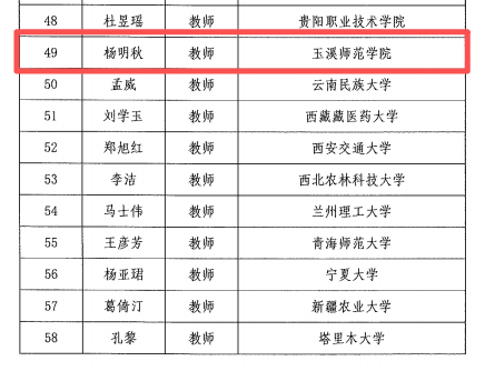 12月4日,教育部公布2024—2025年度“高校毕业生基层就业卓越奖学(教)金”获奖名单,玉溪师范学院学生就业指导中心专职辅导员杨明秋荣获“高校毕业生基层就业卓越奖教金”。该奖项由教育部高校学生司等部门指导、中国教育发展基金会设立,经严格遴选,本年度全国高校仅58名教师获此殊荣。