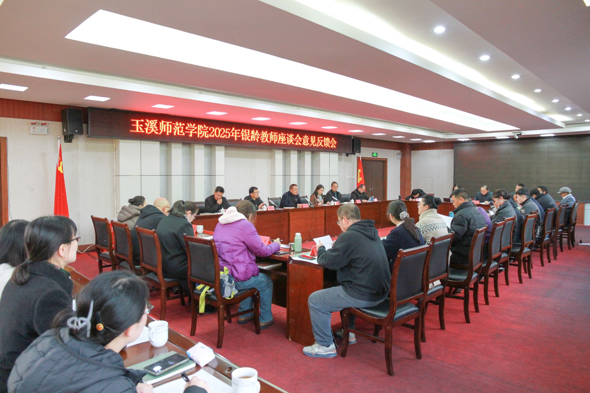 为切实落实银龄教师意见建议、凝聚银龄教师智慧、提升管理服务水平,推动学校高质量发展,12月30日,玉溪师范学院召开2025年银龄教师座谈会意见反馈会,就前期银龄教师座谈会征集到的意见建议进行集中反馈与深入探讨。校党委副书记、校长段红云出席会议并作工作部署。校党委副书记杨光,副校长章新、李明、杨伟、李涛,各学院院长及相关职能部门负责人参加会议。