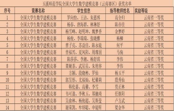 近日,2025年“高教社杯”全国大学生数学建模竞赛获奖结果正式公布。玉溪师范学院数理学院学子表现优异,共荣获云南省一等奖2项、二等奖2项、三等奖10项,总计14项奖项,获奖数量实现历史性突破,充分展现了我校学子扎实的专业功底和出色的创新能力。