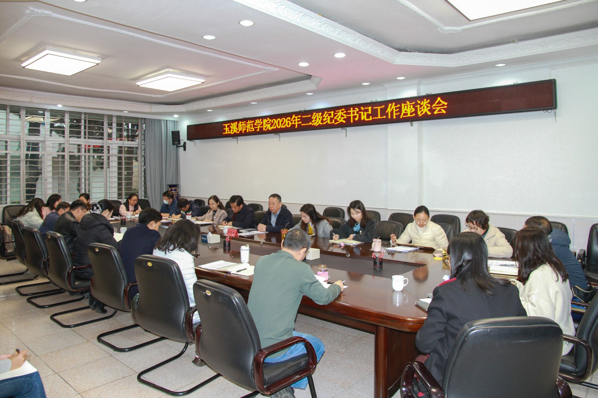 3月13日,玉溪师范学院召开二级纪委书记工作座谈会,深入学习贯彻习近平总书记在二十届中央纪委五次全会上的重要讲话精神,总结交流二级纪委成立以来工作开展情况,分析当前学校纪检监察工作面临的形势任务,部署下一阶段重点工作。学校纪委委员、二级纪委书记及纪检监察处相关人员参加会议。会议由学校纪委书记、监察专员李长虹主持。