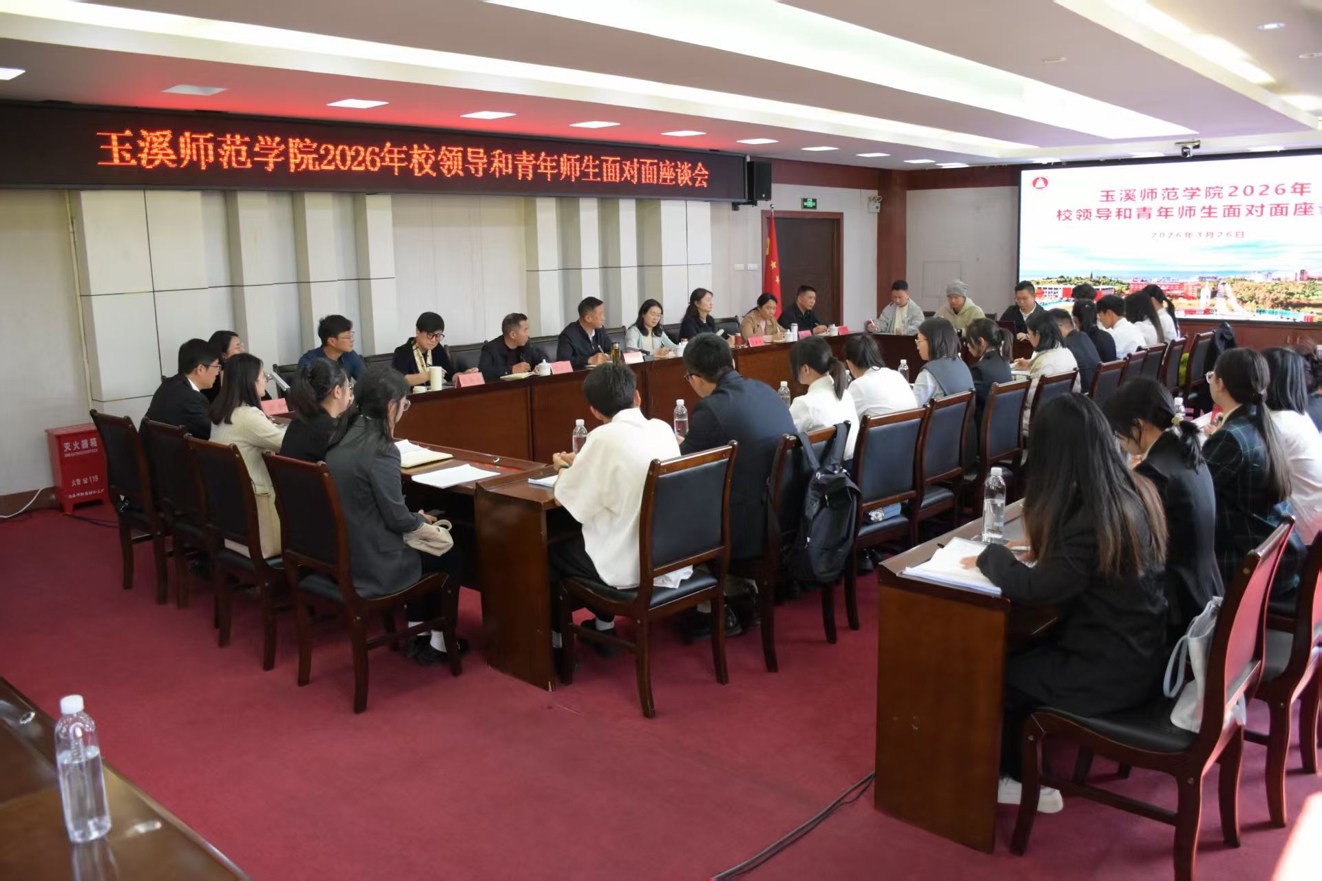 3月26日,玉溪师范学院2026年校领导与青年师生面对面座谈会在图书馆3003会议室举行。校党委书记姜家雄、副书记杨光出席会议,学校办公室、学工部、教务处、保卫处、后勤服务中心、资产经营有限公司主要负责人,校团委全体工作人员及青年师生代表40余人参加会议。会议由校团委副书记余家赛主持。