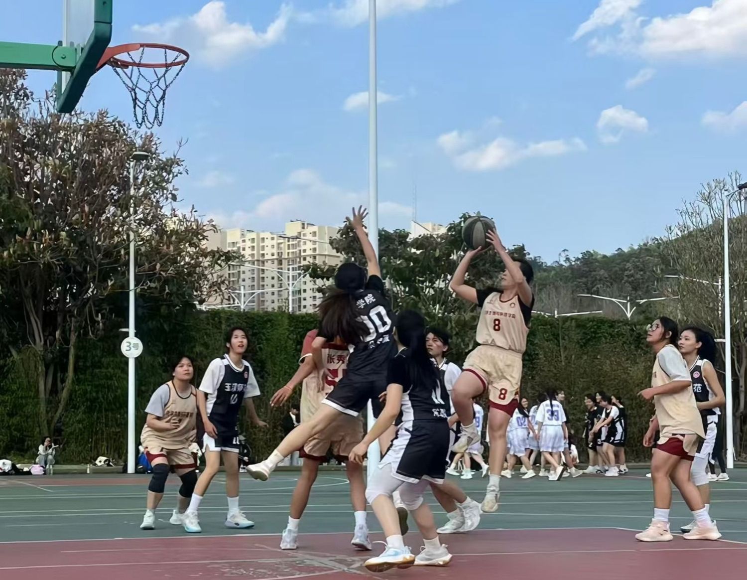 本次联赛由校团委主办、体育学院承办,历时12天,共进行50余场对决,全校12个学院的21支代表队、200余名运动员参赛,篮球裁判协会的30余名裁判员全程执裁。