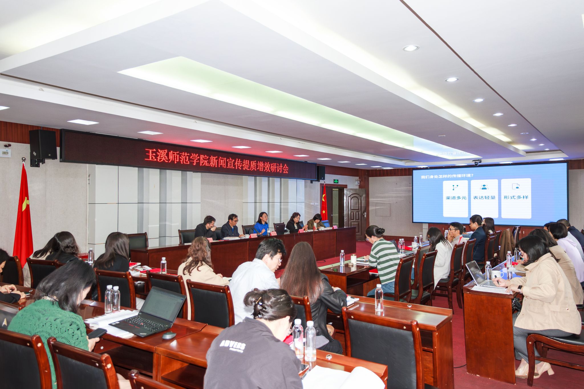 为提升学校新闻宣传队伍业务能力,强化全媒体传播与舆情风险防控水平,4月10日,云南日报社玉溪分社副社长杨茜应邀到玉溪师范学院为全校新闻宣传工作队伍开展新闻业务培训。校党委委员、宣传部部长马恒奕,各学院分管新闻宣传工作的领导,各学院、各部门通讯员,宣传部、新闻中心全体人员,大学生记者团骨干等参加培训。培训会由宣传部副部长、新闻中心主任张国珺主持。