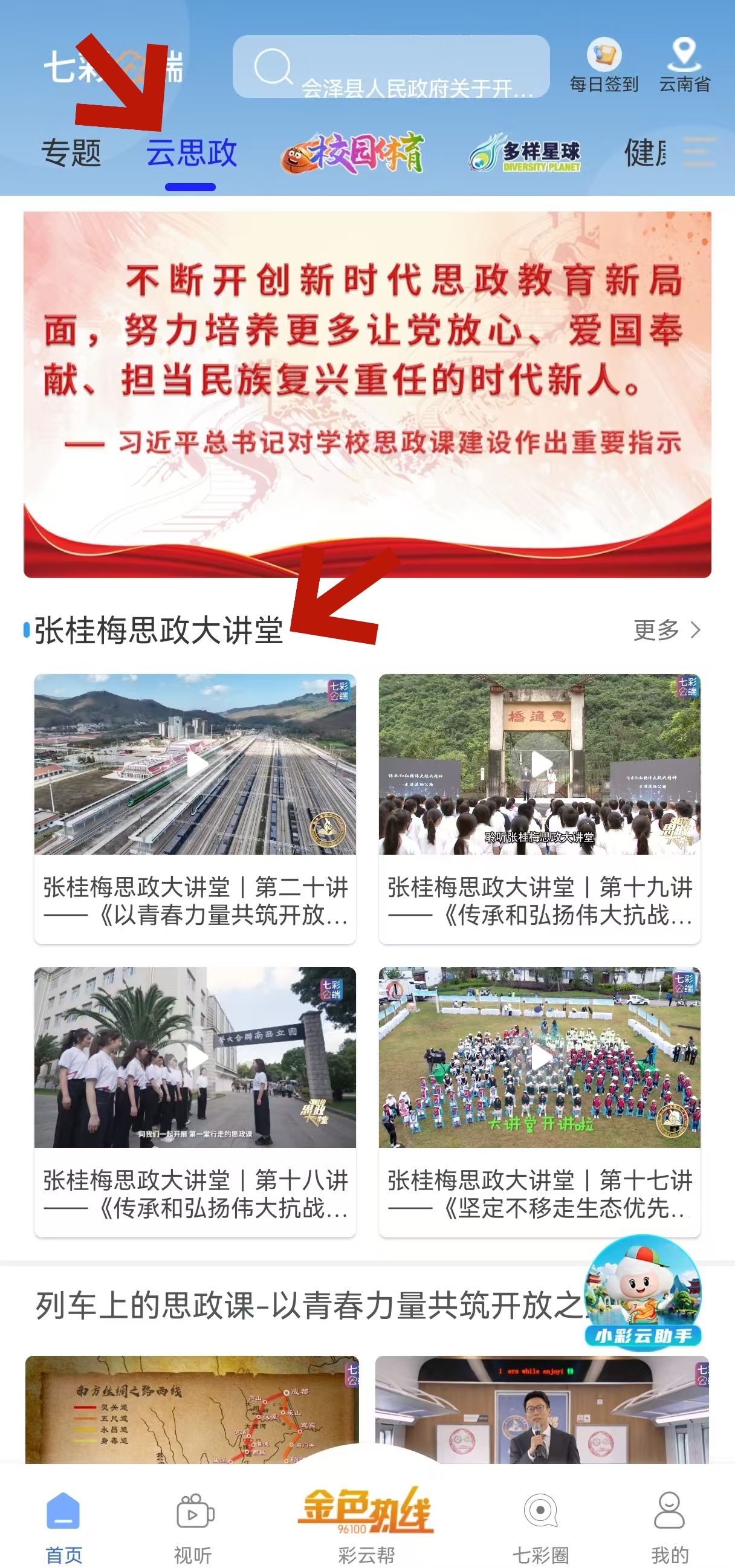 观看方式:下载“七彩云端”,在首页进入《云思政》专栏,观看“张桂梅思政大讲堂”精彩内容。