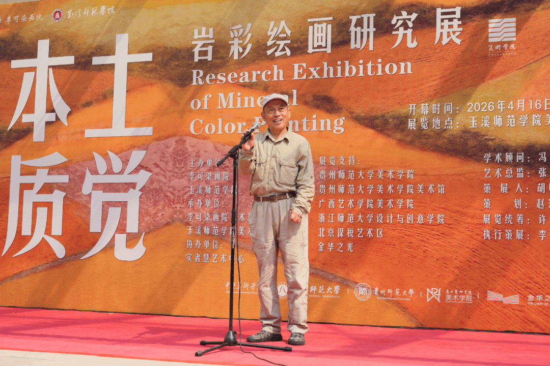 4月16日,“本土·质觉——岩彩绘画研究展”2026玉溪师范学院巡展在学校美术馆隆重开幕。本次展览由中央美术学院胡明哲教授策展,李可染画院与玉溪师范学院联合主办,中央美术学院鼎力支持,是一场兼具学术价值与文化内涵的艺术盛宴。