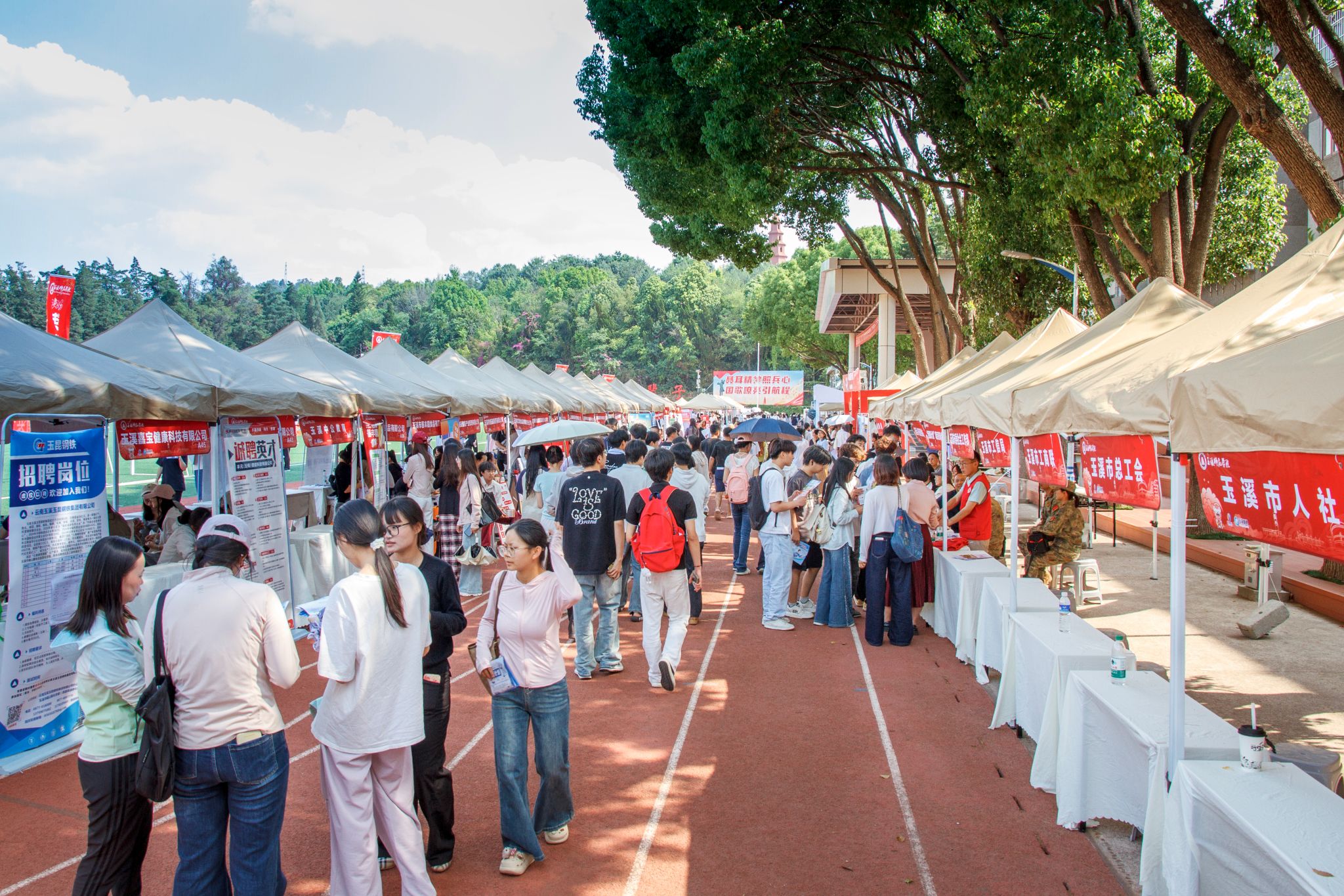 4月17日,云南省2026届高校毕业生工业园区(滇中地区)专场招聘会在玉溪师范学院田径场举行。本次招聘会由省委教育工委、省教育厅主办,得到云南省大中专毕业生就业服务中心、玉溪市人力资源和社会保障局、玉溪市委社会工作部、玉溪市总工会、玉溪市红塔区总工会、玉溪市工业和信息化局、玉溪市工商联等单位的大力支持。