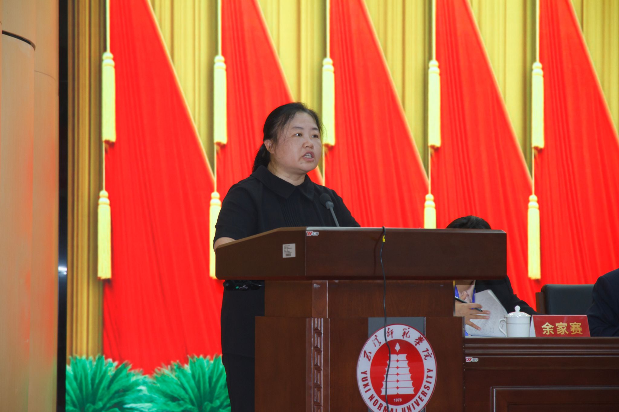 玉溪市总工会党组成员、副主席郭春梅到会致辞,对大会的召开表示热烈祝贺,对学校近年来在人才培养、科学研究、服务地方及民主管理、工会工作等方面取得的成绩给予充分肯定,希望学校以此次 “双代会”为新起点,进一步凝聚全校教职工智慧和力量,为推进学校高质量跨越式发展作出新贡献。