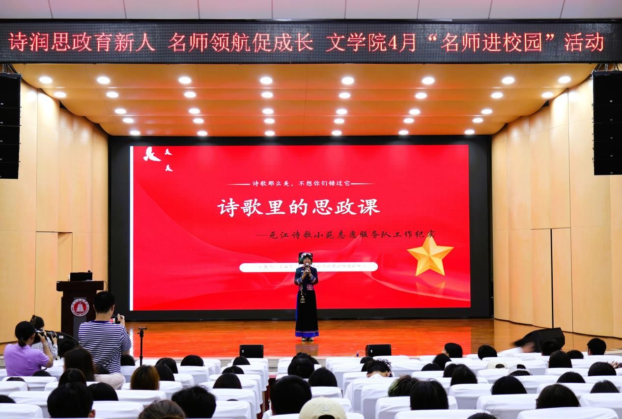 4月22日,玉溪师范学院文学院以“诗润思政育新人,名师领航促成长”为主题的读书月“名师进校园”活动在聂耳演艺厅举行。活动深化校地协同,携手共建、合力打造“诗歌里的思政课”,推动文学教育与思政育人深度融合。