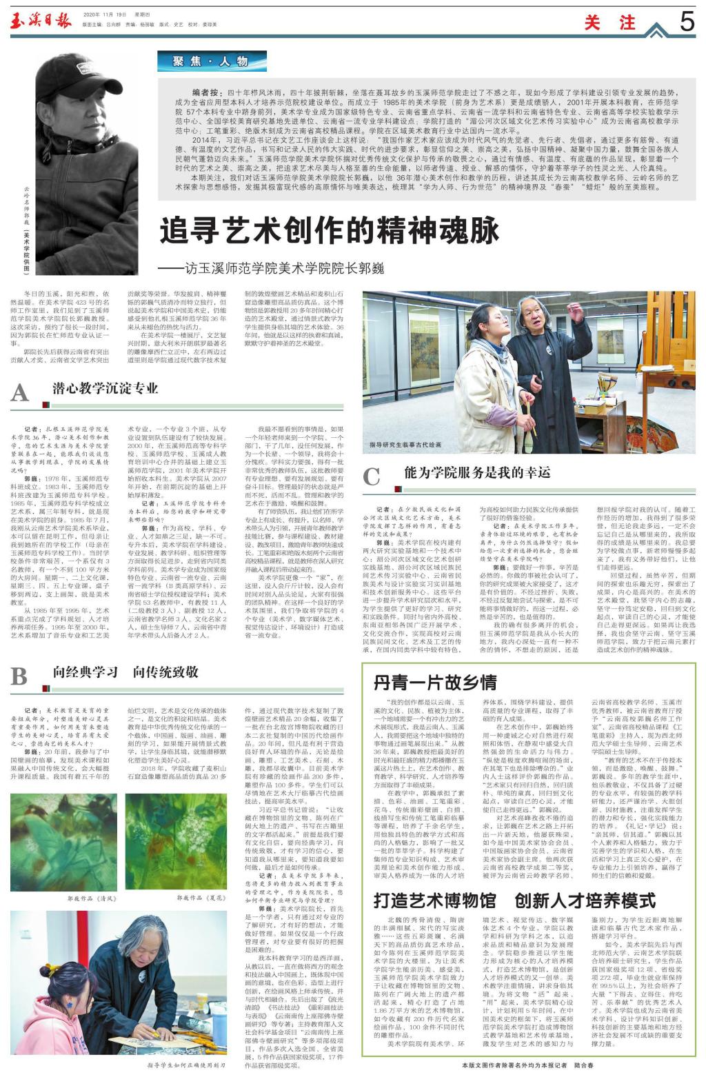 冬日的玉溪,阳光和煦,依然温暖。在美术学院423号的名师工作室里,我们见到了玉溪师范学院美术学院院长郭巍教授。这次采访,预约了很长一段时间,因为郭院长在忙师范专业认证一事。
