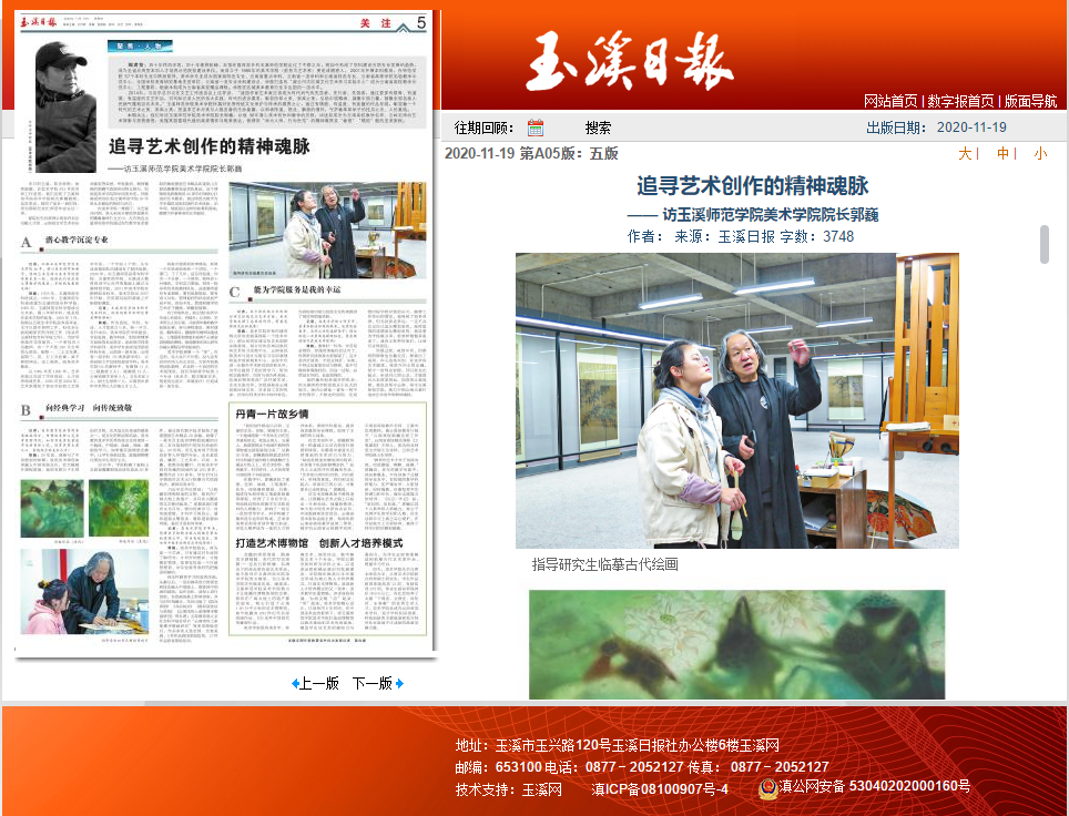 郭院长先后获得云南省有突出贡献人才奖、云南省文学艺术突出贡献奖等荣誉。华发披肩、精神矍铄的郭巍气质清冷而特立独行,但说起美术学院和中国美术史,仍能感受到他扎根玉溪师范学院36年来从未褪色的热忱与活力。