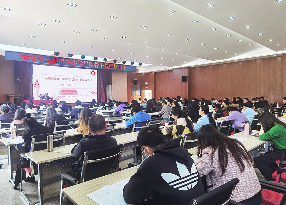 本次培训班由玉溪市教育体育局及玉溪师范学院马克思主义学院联合举办,以线下集中+线上同步课程的方式开展。培训班为期4天,以“党的二十大精神融入中小学思政课”为主题,设置了党的二十大报告解读、习近平新时代中国特色社会主义思想“三进”、一体化背景下中小学思政课课程与教学研讨、学员论坛等四个模块,通过专题讲座、实践教学、说课及课例展示等多种教学方式,进一步提升学员政策理论水平和思政课教学能力。来自全市各中小学的4980名思政课骨干教师参加培训,其中线下集中培训100人,线上培训4880人。