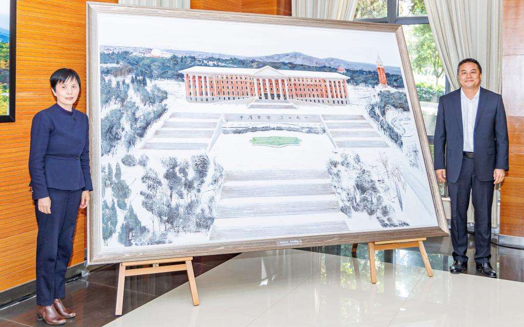 在云南大学百年校庆即将到来之际,玉溪师范学院向云南大学赠送了由学校美术学院教师团队精心创作的油画作品——《百年云大 百年辉煌》。