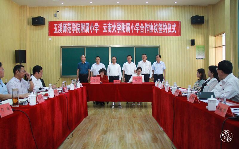 近日,玉溪师范学院附属小学工作推进会暨与云南大学附属小学合作协议签约仪式在玉溪师范学院附属小学举行。玉溪师范学院附属小学将与云南大学附属小学合作办学,联合打造高水平、高标准、高质量的教育品牌,引领带动和促进两地基础教育的高质量发展。