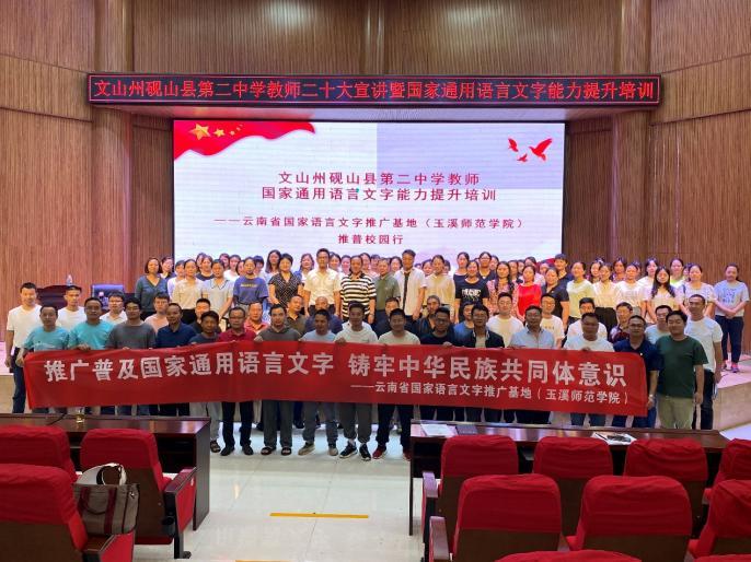 近日,云南省国家语言文字推广基地(玉溪师范学院)派出由国家级普通话测评员、省级普通话测评员,以及语言学、教育学博士组成的推广团队,深入云南省文山壮族苗族自治州丘北县和砚山县,面向基层干部、一线教师、党员及少数民族群众等不同群体开展国家通用语言文字能力提升专题培训。