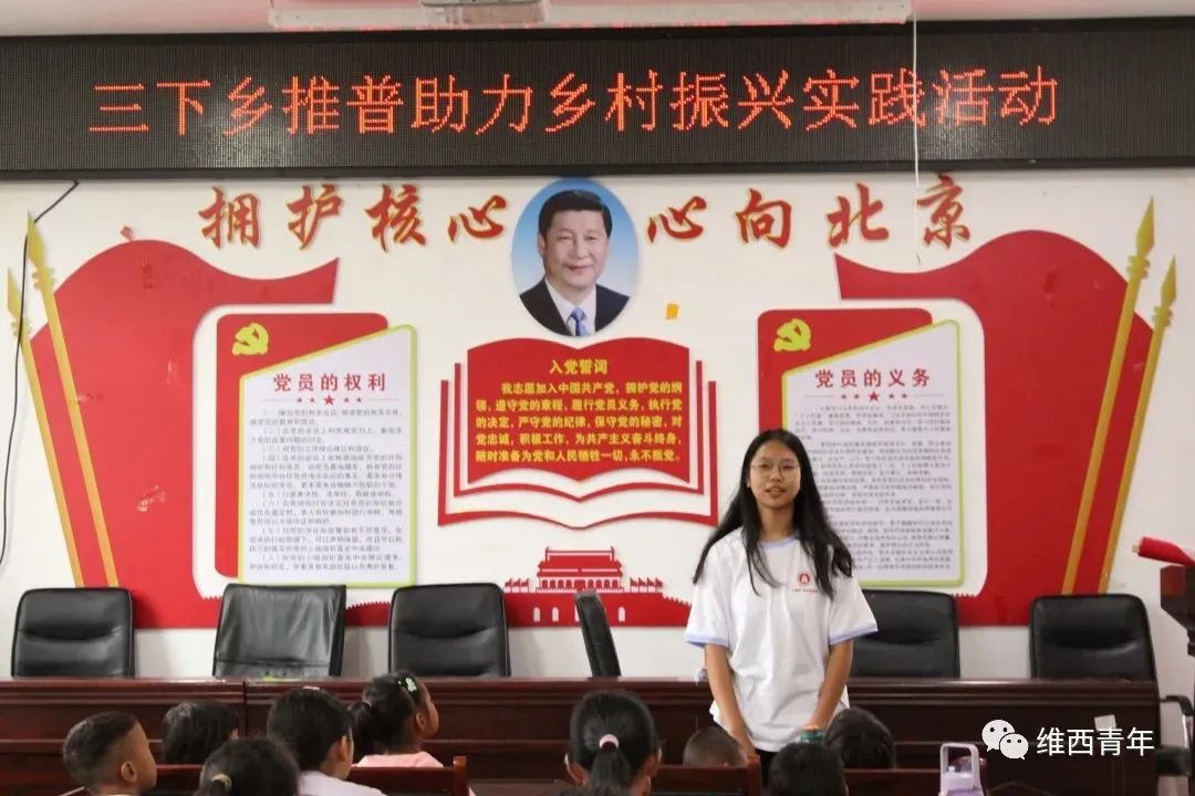 维西傈僳族自治县隶属于云南省迪庆藏族自治州,是全国唯一的傈僳族自治县。为了深入学习贯彻落实党的二十大精神,加大国家通用语言文字的推广力度,提高民族地区国家通用语言文字普及程度,服务铸牢中华民族共同体意识,助力乡村振兴战略实施,2023年7月17日起,玉溪师范学院“石榴籽”青年推普团进入维西县叶枝镇开展为期一周的“推普助力乡村振兴”社会实践活动。
