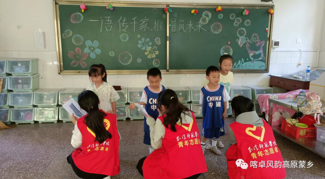 为全面落实全国语言文字会议精神,加大民族地区国家通用语言文字推广力度,铸牢中华民族共同体意识,全面助力乡村振兴。近日,玉溪师范学院教师教育学院“萤火虫”推普实践团联合兴蒙乡中心幼儿园开展一系列普通话推广活动。