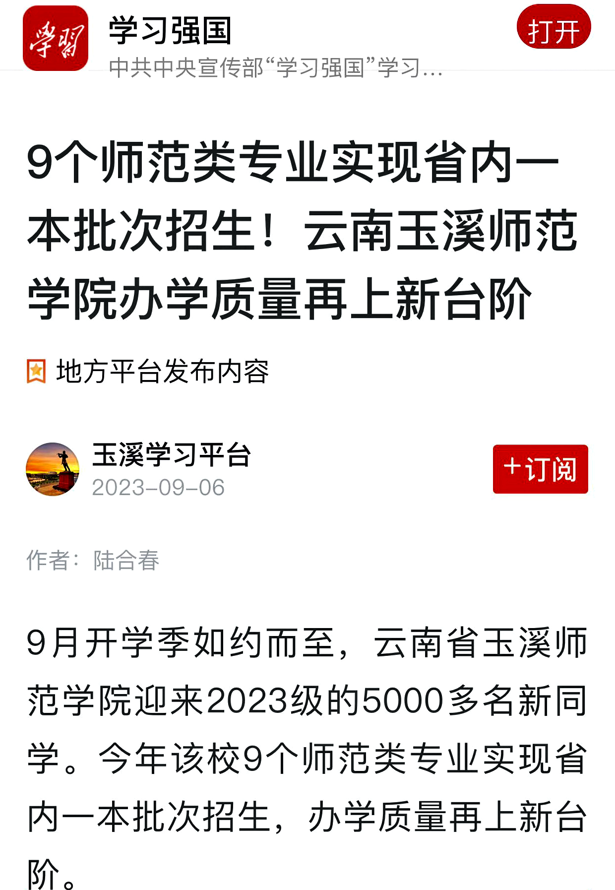 9月开学季如约而至,云南省玉溪师范学院迎来2023级的5000多名新同学。今年该校9个师范类专业实现省内一本批次招生,办学质量再上新台阶。