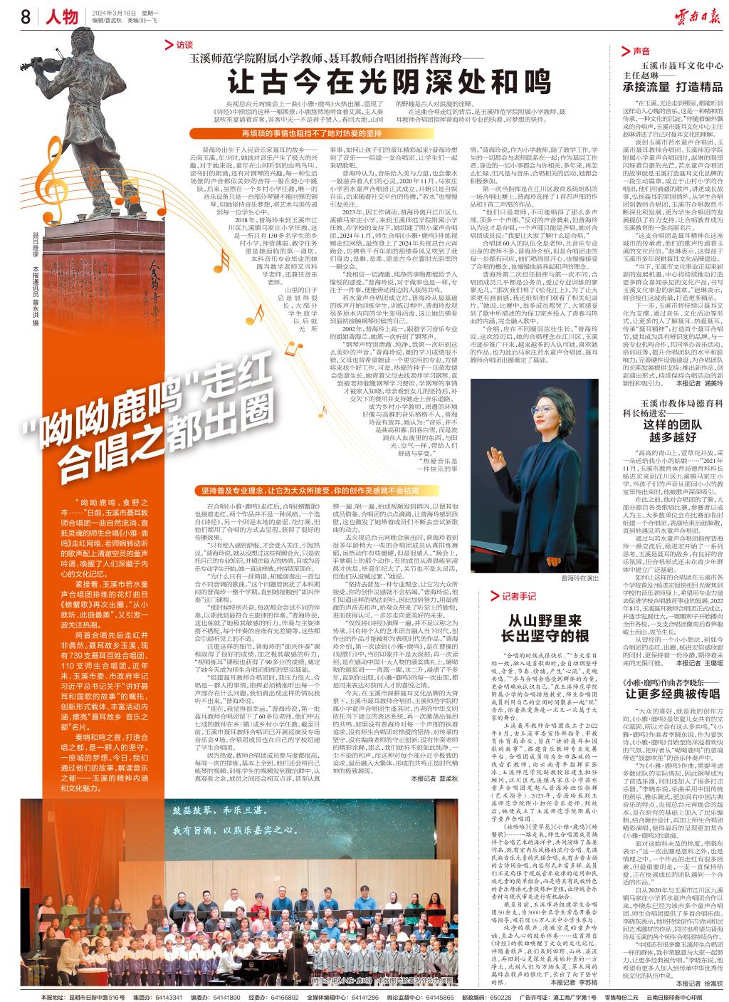 3月18日,《云南日报》第八版专访玉溪师范学院附属小学教师普海玲(版面截图)
