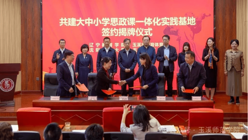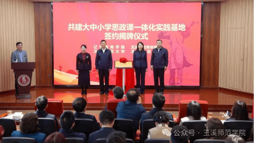 辽宁教育学院、沈阳师范大学、玉溪市教育体育局、玉溪师范学院相关领导共同签订了《合作共建大中小学思政课一体化实践基地战略合作框架协议》,并为大中小学思政课一体化实践基地揭牌。