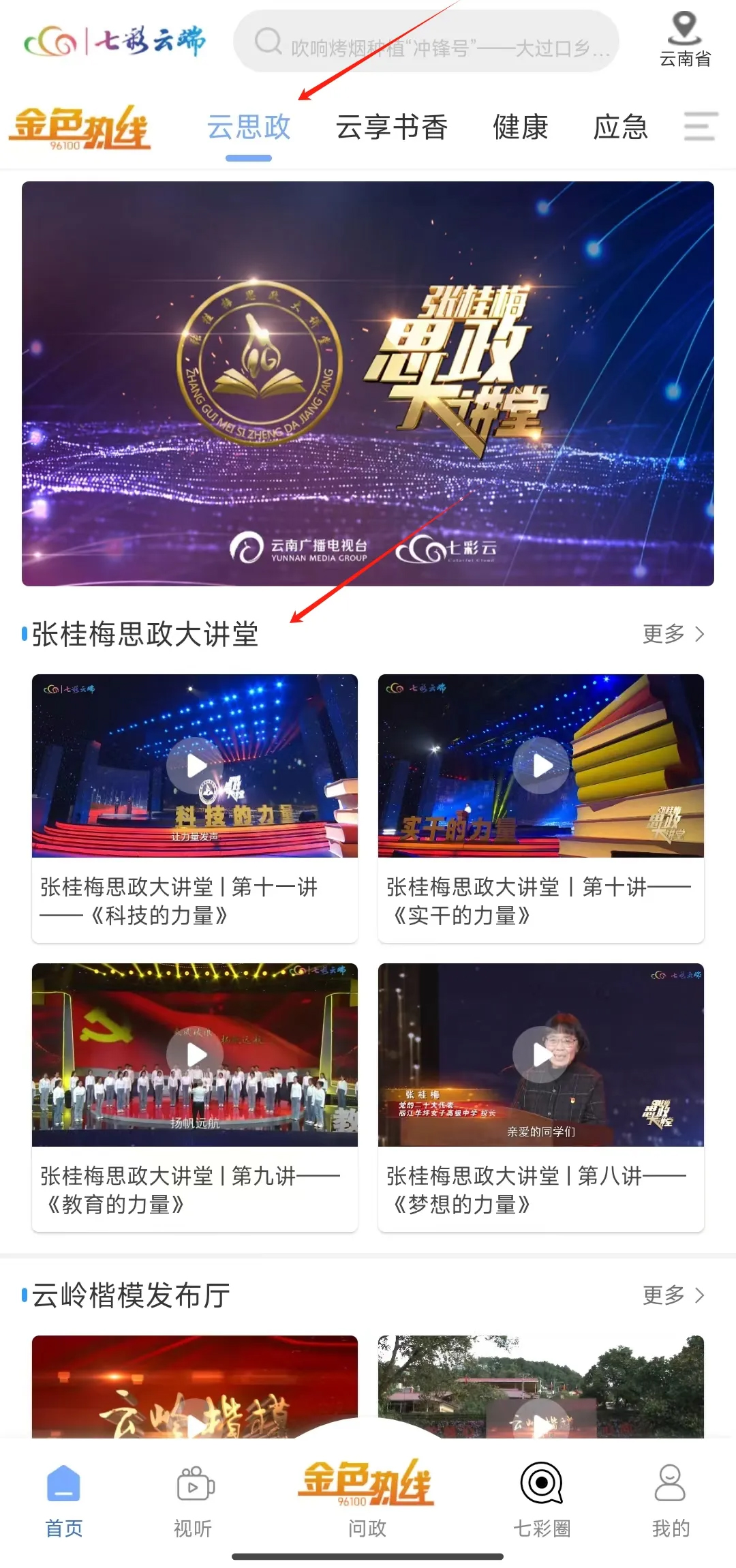下载七彩云端,在首页进入《云思政》专栏,观看“张桂梅思政大讲堂”精彩内容。
