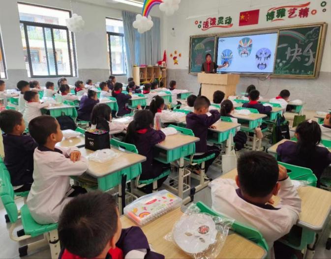 活动根据小学生成长特点,精心设计了“京剧脸谱、灯笼字谜、活字印刷、华服礼仪、扇上字画、甲骨成语”六类文化小课堂,将讲解中华优秀语言文化与手工制作、文化体验结合。玉溪师范学院附属小学各年级学生在大学生志愿者带领下,通过学习京剧脸谱知识了解中华文化;通过活字印刷、灯笼字谜感受学习汉字的乐趣,体验汉字之美;通过了解唐代服饰特点感受中华文化的开放与包容;通过绘制诗词扇面感悟经典雅趣;集体观看中国语言文字数字博物馆视频资源《甲骨成语》,并手绘甲骨文书签。这些新颖有趣的国学课,是国家语言文字推广基地(玉溪师范学院)大学生语言文化类社团送给小学生的儿童节礼物。