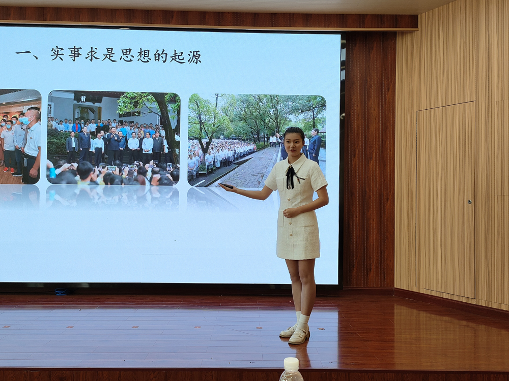 在决赛现场,各参赛团队紧密结合时事热点与实践调研确定参赛主题,所宣讲内容既融入家国情怀,又体现青年一代的责任和担当。参赛选手们用生动的语言、真挚的情感,讲述与思政课相关的感人故事,传递催人奋进的精神力量。马克思主义学院23级思政一班学生熊紫燕说:“思政课不仅是我们认识世界、理解社会的窗口,更是我们塑造品格、坚定信仰的熔炉,它教会我们独立思考,明辨是非,在复杂多变的世界中保持清醒的头脑和坚定的信念。”