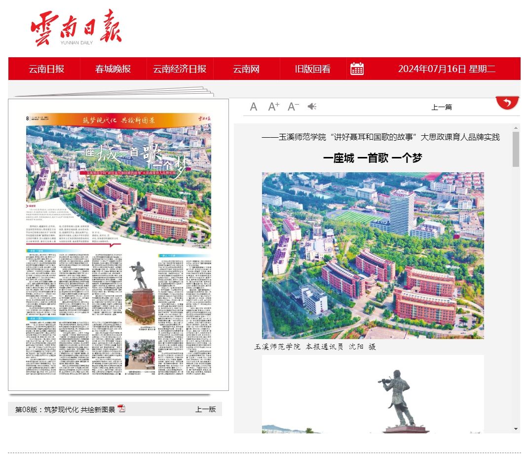 7月17日是聂耳纪念日,玉溪是伟大人民音乐家聂耳的故乡。作为聂耳故乡的唯一本科高校,玉溪师范学院始终把聂耳和国歌所承载的丰富历史内涵凝练成生动实践教材,担教育初心使命,育爱国善教之才,展示了玉溪市“讲好聂耳和国歌的故事”的生动实践。