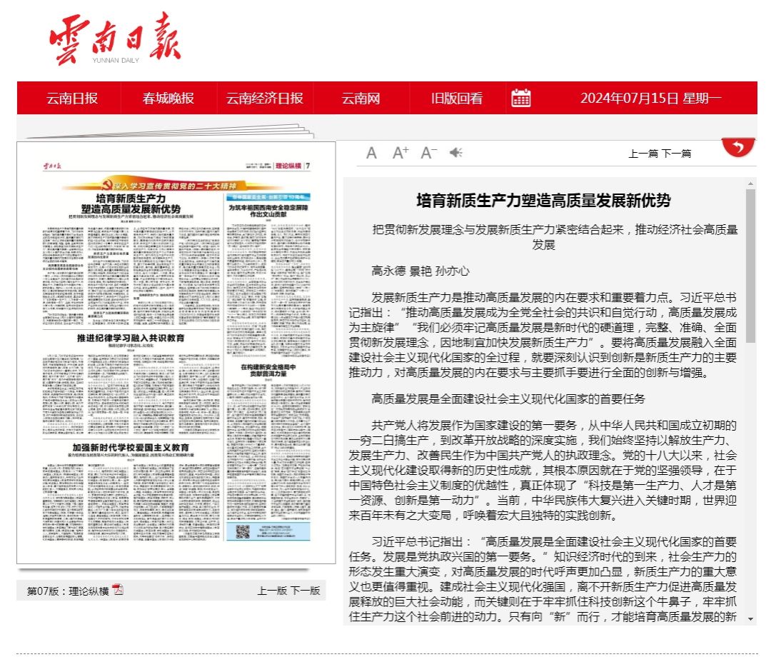 作为生产力发展的新方向,习近平总书记强调:“生产力是人类社会发展的根本动力,也是一切社会变迁和政治变革的终极原因。高质量发展需要新的生产力理论来指导,而新质生产力已经在实践中形成并展示出对高质量发展的强劲推动力、支撑力,需要我们从理论上进行总结、概括,用以指导新的发展实践。”新质生产力自产生之时,在极大提高劳动生产率的同时,也催生了新的社会需求,提升了当代社会的总体供给能力。新质生产力的特点是创新,关键在质优,本质是先进生产力,新质生产力内含的关键性颠覆性技术突破,能够促进传统产业转型升级以及战略性新兴产业、未来产业的形成和发展,实现经济增长方式的转变,适应高质量发展的目标要求。