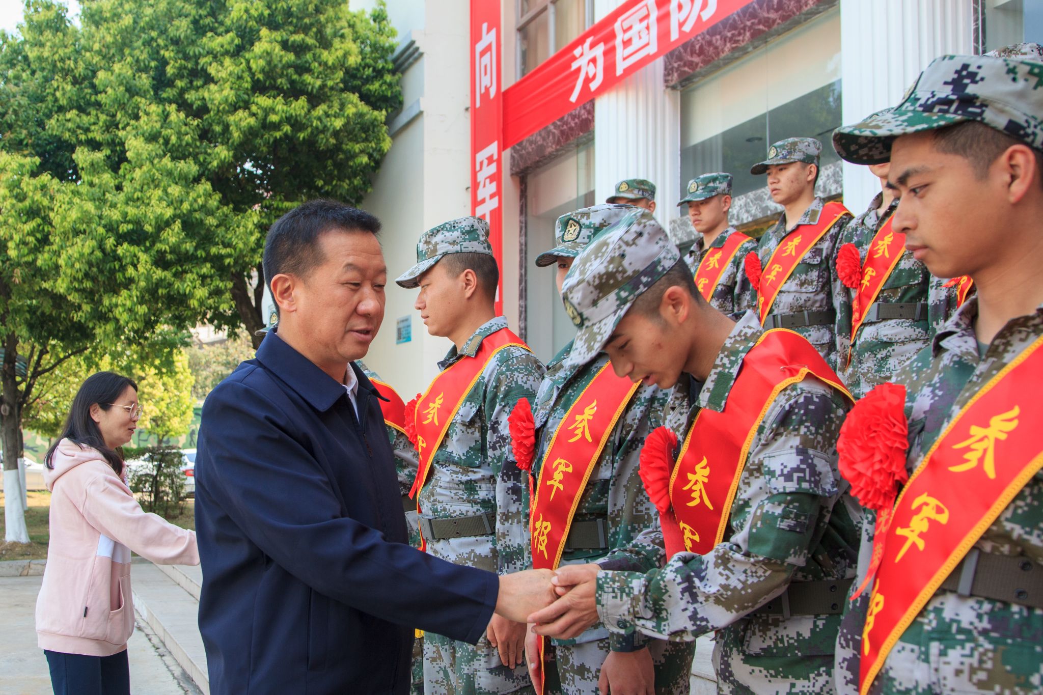 健全机制,强化领导出实招。学校着力提升党管武装质效,突出政治保证,把党的强有力领导贯穿学校国防教育全过程,校党委书记亲自抓,亲自管,定期听取征兵工作动态和进展情况,亲自参与征兵工作安排部署,确保征兵各项工作末端落实。3月10日上午,校党委书记姜家雄、副书记杨光参加我校2025年春季应征入伍大学生新兵欢送仪式,勉励同学们坚定信念、听从指挥、建功立业。