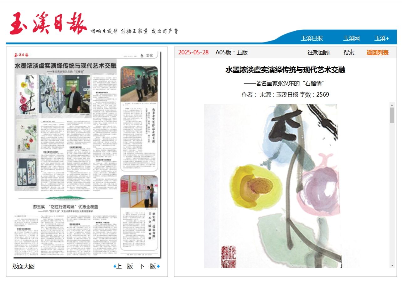 近年来,南虫艺术创始人、玉溪师院湄公河次区域民族民间文化传习馆名誉馆长、著名画家张汉东从浩瀚的书画艺术中获取灵感,致力于用南虫艺术的创作方法画石榴,将书法、绘画(水墨、版画、油画)融为一体,创作新的艺术作品。