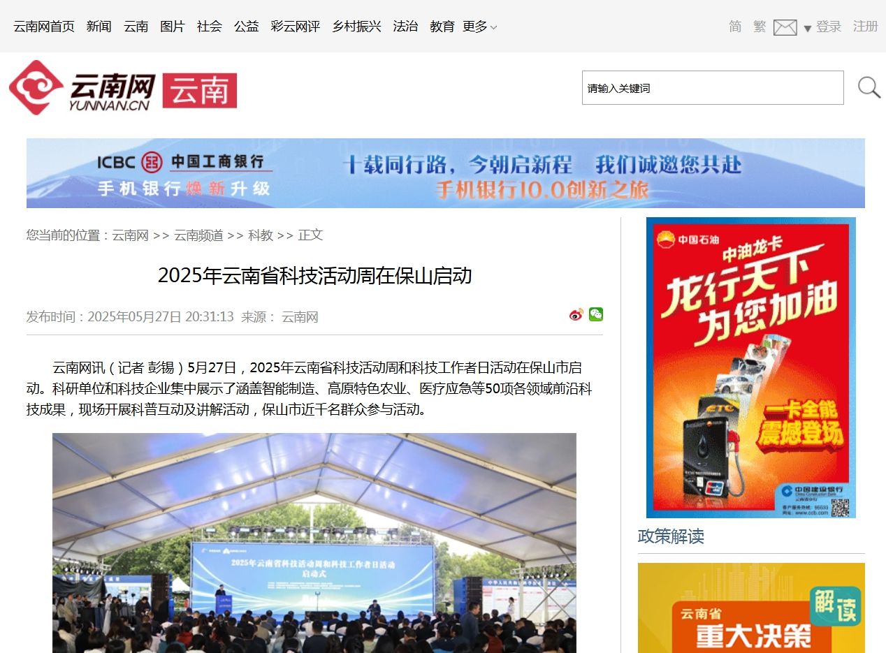 本次活动由云南省科学技术厅、中共云南省委宣传部、云南省科学技术协会和保山市人民政府共同举办。
