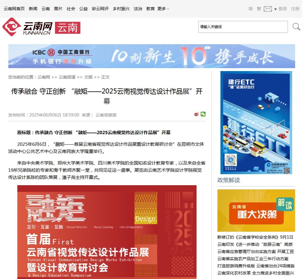 2025年6月6日,“融矩——首届云南省视觉传达设计作品展暨设计教育研讨会”在昆明市文体活动中心公共艺术中心及云南民族大学隆重举行。