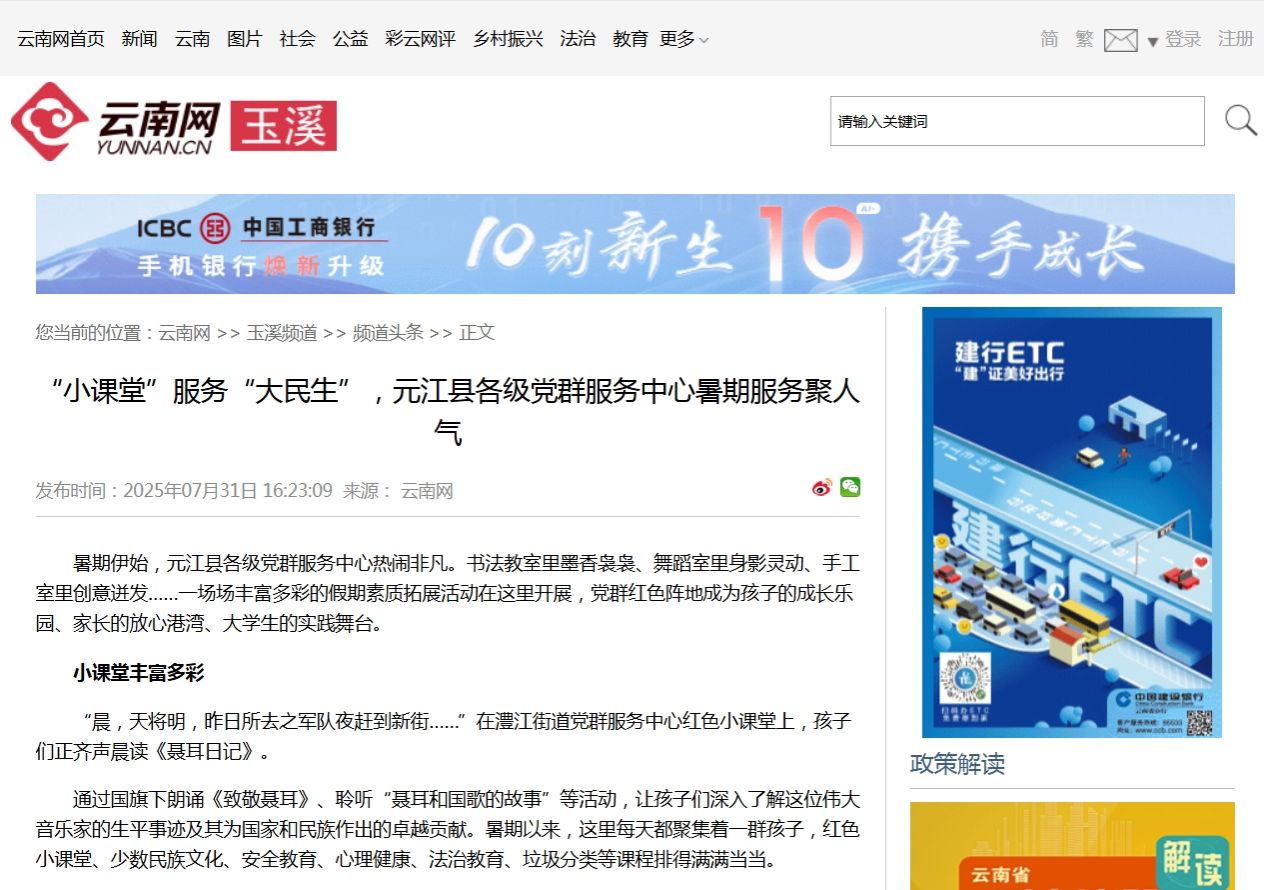 为把惠民生、暖民心、顺民意的工作做到群众心坎上,增强人民群众获得感、幸福感和安全感,元江县各级党群服务中心以群众需求为导向,整合资源、汇聚力量,让办好假期素质拓展班成为服务群众的民心工程。从城市到乡村,红色阵地热度持续攀升,“热气腾腾”的党群服务中心正以多元服务凝聚人气,用实际行动书写“以人民为中心”的生动实践。
