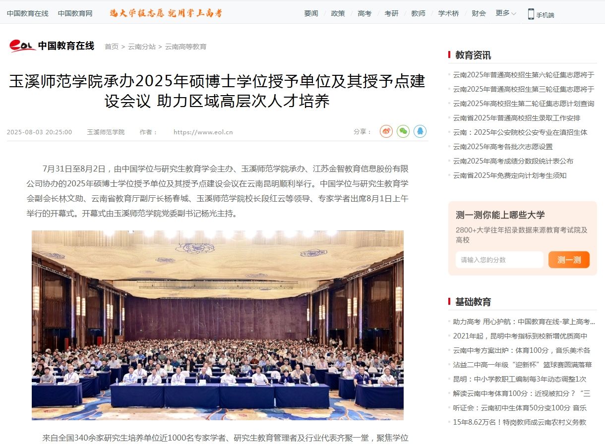 【中国教育在线】玉溪师范学院承办2025年硕博士学位授予单位及其授予点建设会议 助力区域高层次人才培养