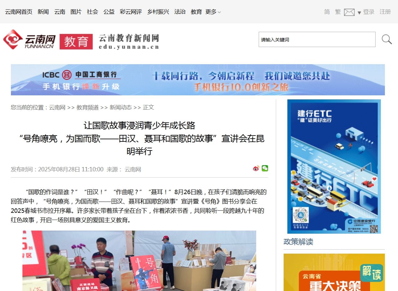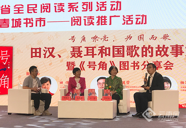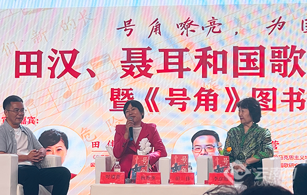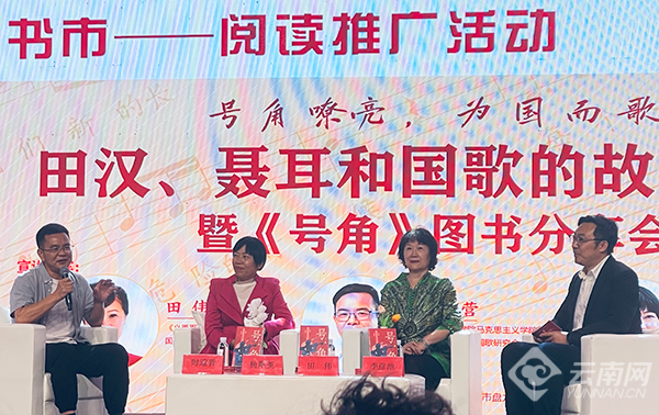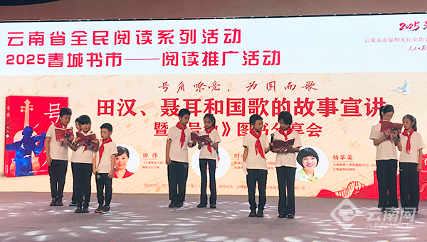 “国歌的作词是谁?”“田汉!”“作曲呢?”“聂耳!”8月26日晚,在孩子们清脆而响亮的回答声中,“号角嘹亮,为国而歌——田汉、聂耳和国歌的故事”宣讲暨《号角》图书分享会在2025春城书市拉开序幕。许多家长带着孩子坐在台下,伴着浓浓书香,共同聆听一段跨越九十年的红色故事,开启一场别具意义的爱国主义教育。