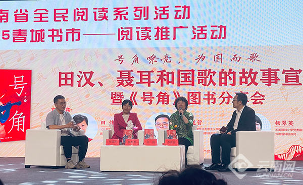 活动现场,田汉先生的侄女、知名国歌文化大使田伟,玉溪师范学院马克思主义学院院长、玉溪市聂耳和国歌研究会会长时遂营,玉溪聂耳小学党委书记、云南省特级教师杨翠英,以及晨光出版社编辑、主持人李彦池围坐一堂,展开了一场多视角、深层次的访谈。他们从家族记忆、学术研究、教育实践及出版传播等不同角度,生动讲述了田汉与聂耳的故事,解读了国歌中蕴含的民族精神与历史意义,并分享了在校园内传承红色基因、弘扬国歌精神的宝贵经验。通过他们的讲述,现场观众仿佛穿越时空,回到了那段烽火连天、救亡图存的年代,深刻感受到国歌背后跨越时代的精神力量。