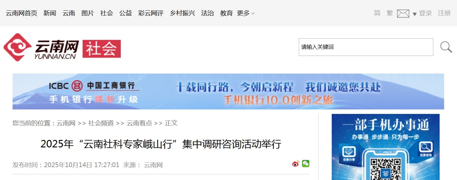 据介绍,2025年度“云南社科专家基层行”调研咨询活动计划开展4场,覆盖“1个州(市)+3个县(市)”,即红河州、盈江县、泸水市及峨山县。