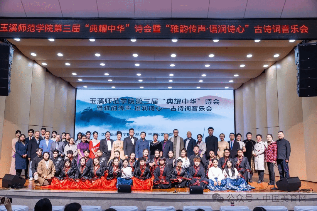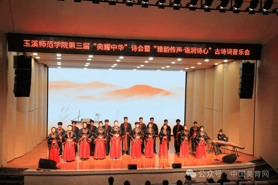 “诗言志,歌永言”。11月3日晚,由国家语言文字推广基地(玉溪师范学院)主办,音乐学院承办,文学院协办的玉溪师范学院第三届“典耀中华”诗会暨“雅韵传声·语润诗心”古诗词音乐会成功举行。本次晚会以“古韵新声”为主题,采用“讲解+朗诵+演唱”的创新形式,对八首经典诗词进行全新演绎。