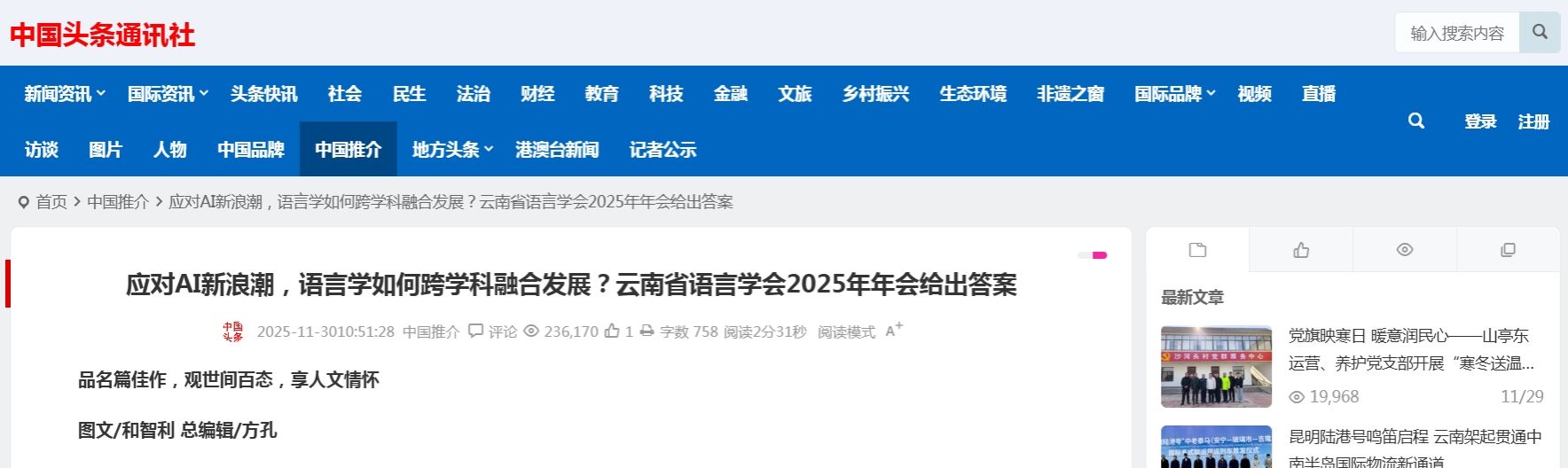 【中国头条通讯社】应对AI新浪潮,语言学如何跨学科融合发展?云南省语言学会2025年年会给出答案