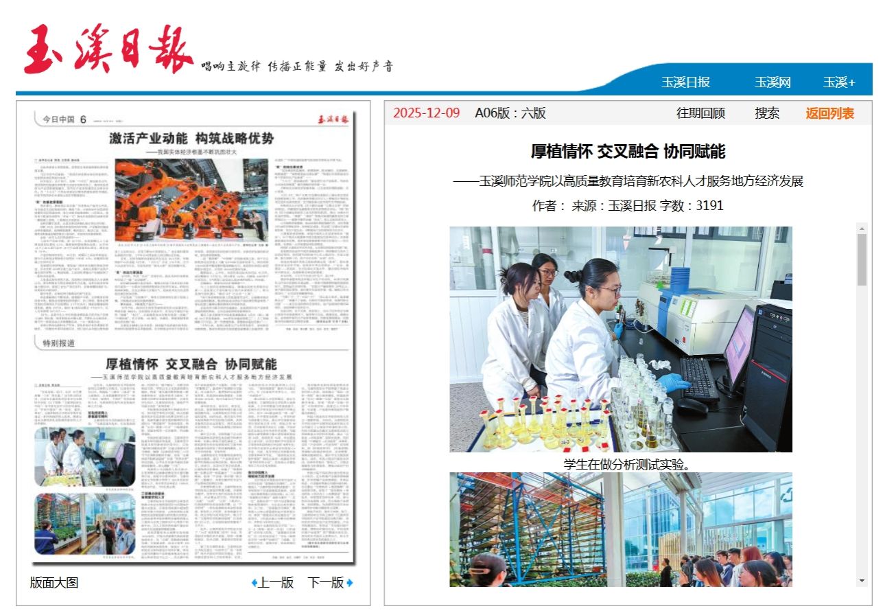 近年来,玉溪师院农生学院始终坚持以立德树人为根本,以强农兴农为己任,构建起“三融合·三递进”育人新模式,以高质量教育培养了一批“下得去、留得住、干得好”的知农爱农人才,为高原特色现代农业发展贡献人才力量。