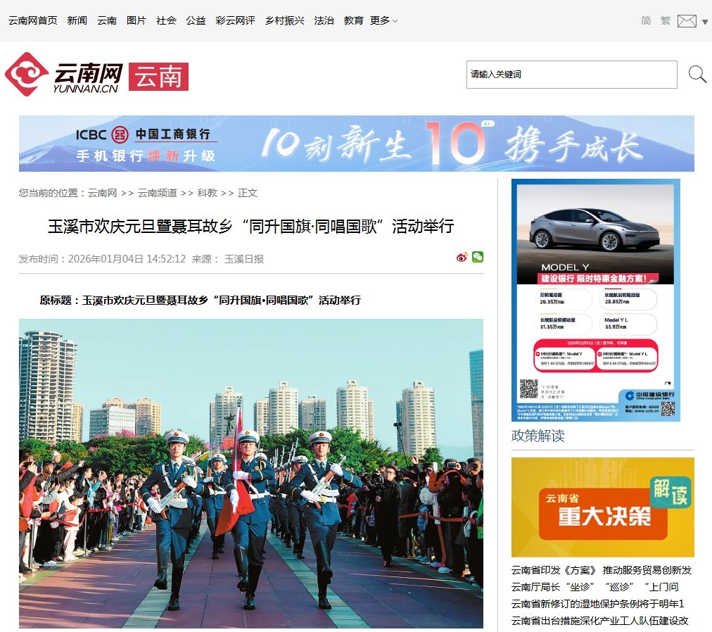 伴随着2026年新年第一缕阳光,玉溪市欢庆元旦暨聂耳故乡“同升国旗·同唱国歌”活动在聂耳广场举行。