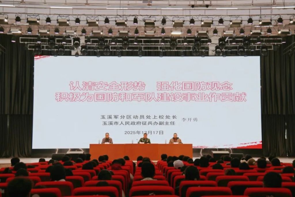 号角催征,热血集结!为进一步激发适龄青年参军热情,2025年12月17日,玉溪市征兵办、红塔区征兵办两级联动,走进玉溪职业技术学院,举办2026年上半年征兵宣讲活动,通过“订单式”的征兵宣传,精准架设了一座连接课堂与战场、技能与战位的桥梁。
