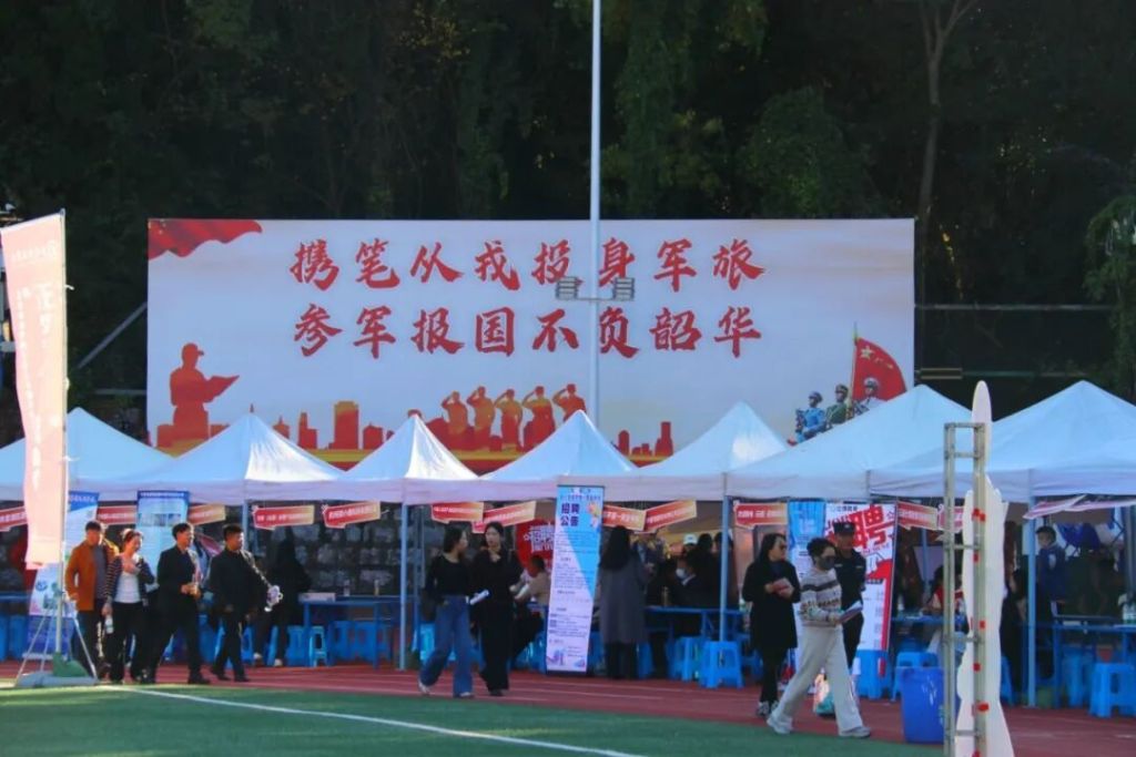 初冬的玉溪师范学院校园,暖阳高照,气氛热烈。供需会吸引了近800家用人单位参与,在琳琅满目的供需会现场,“携笔从戎投身军旅,参军报国不负韶华”的征兵宣传海报格外醒目,前来求职的毕业生、在校生对应征入伍的热情丝毫不减,纷纷驻足咨询,学生家长、老师、用人单位也都积极前来了解相关政策。
