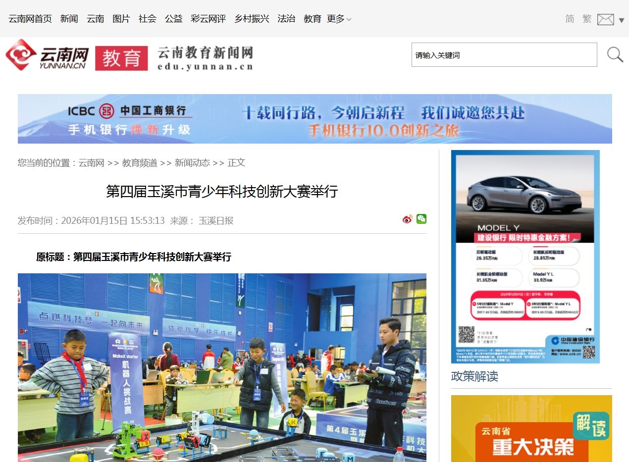 1月10日,由玉溪市科学技术协会、玉溪市教育体育局主办的第四届玉溪市青少年科技创新大赛暨机器人无人机大赛在中共玉溪市委党校开幕。为期两天的赛事吸引了来自全市的640名青少年科技爱好者齐聚一堂,展开激烈角逐。