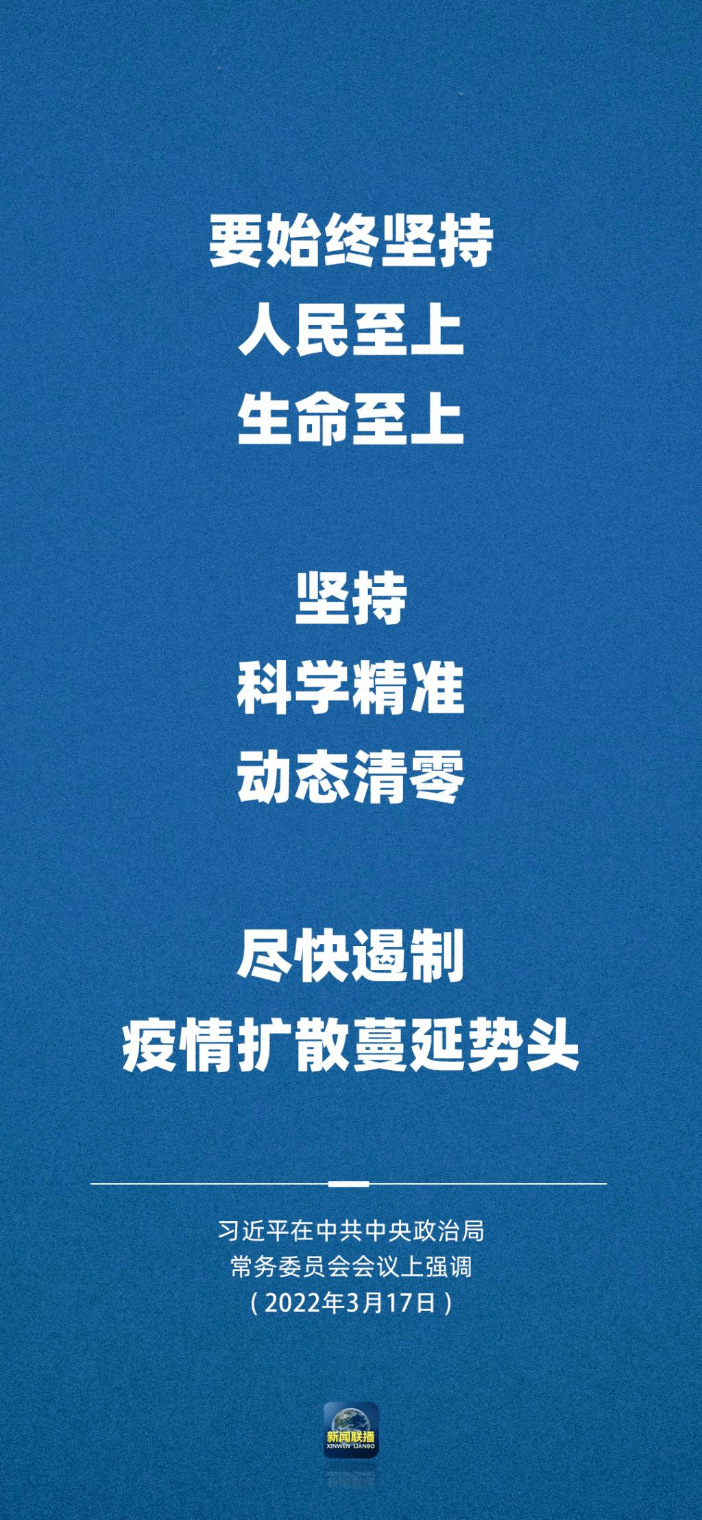 要始终坚持人民至上、生命至上,坚持科学精准、动态清零,尽快遏制疫情扩散蔓延势头。