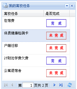 4、在我的离校任务查看需要办理的各项手续。电子离校系统中若相应项目审核已标识为“完成”状态,则表示同学该项目已办妥离校手续.否则,需前往该部门办理离校手续或进行咨询。