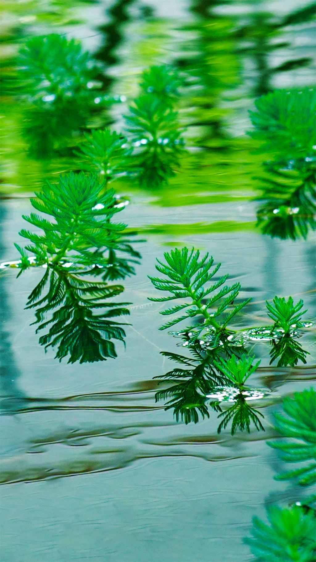 水波荡漾,绿枝轻浮,微风拂过,带来丝丝清凉。