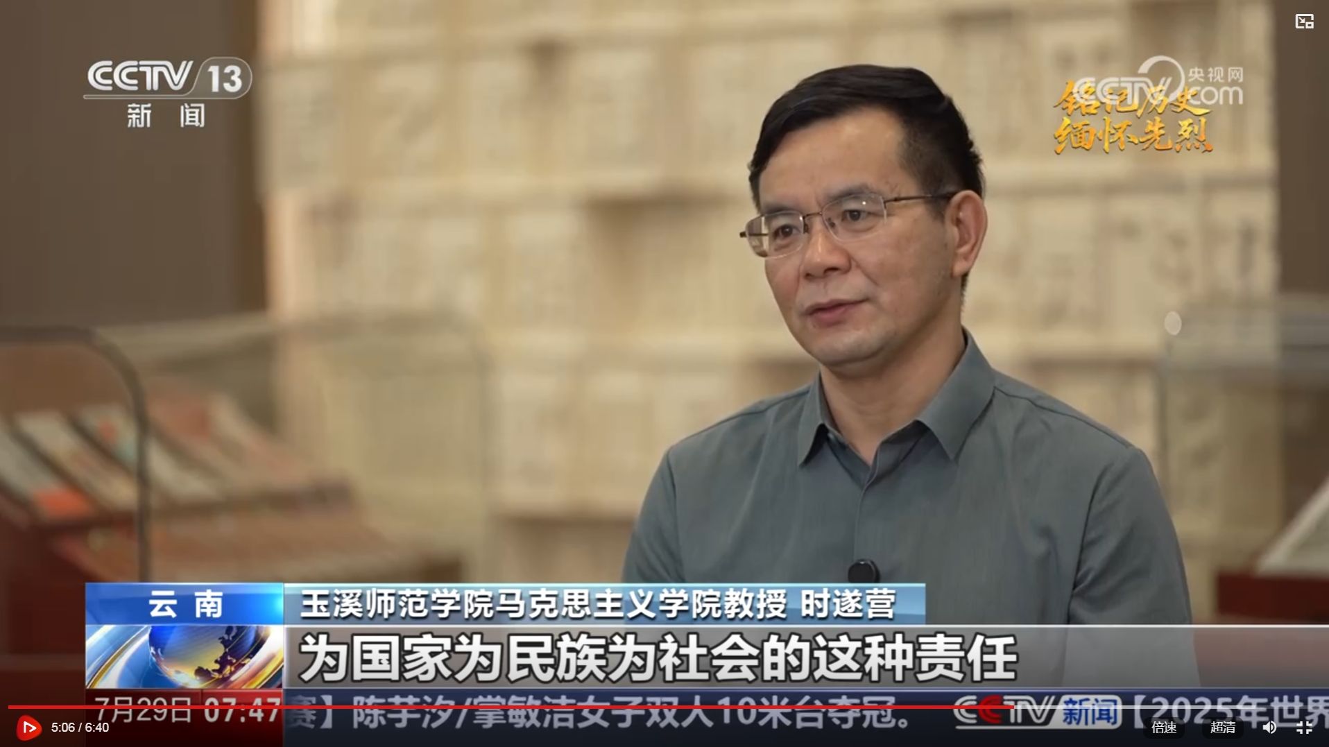玉溪师范学院马克思主义学院教授 时遂营:其实他已经担负起了为国家为民族为社会的这种责任,把自己和社会融为一体,也希望能在社会里成为国家的栋梁,做出伟大的事业。