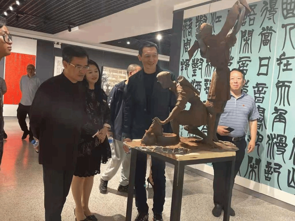 云南艺术学院陈劲松副校长、中央美术学院博士生导师肖勇教授参观二楼艺术作品