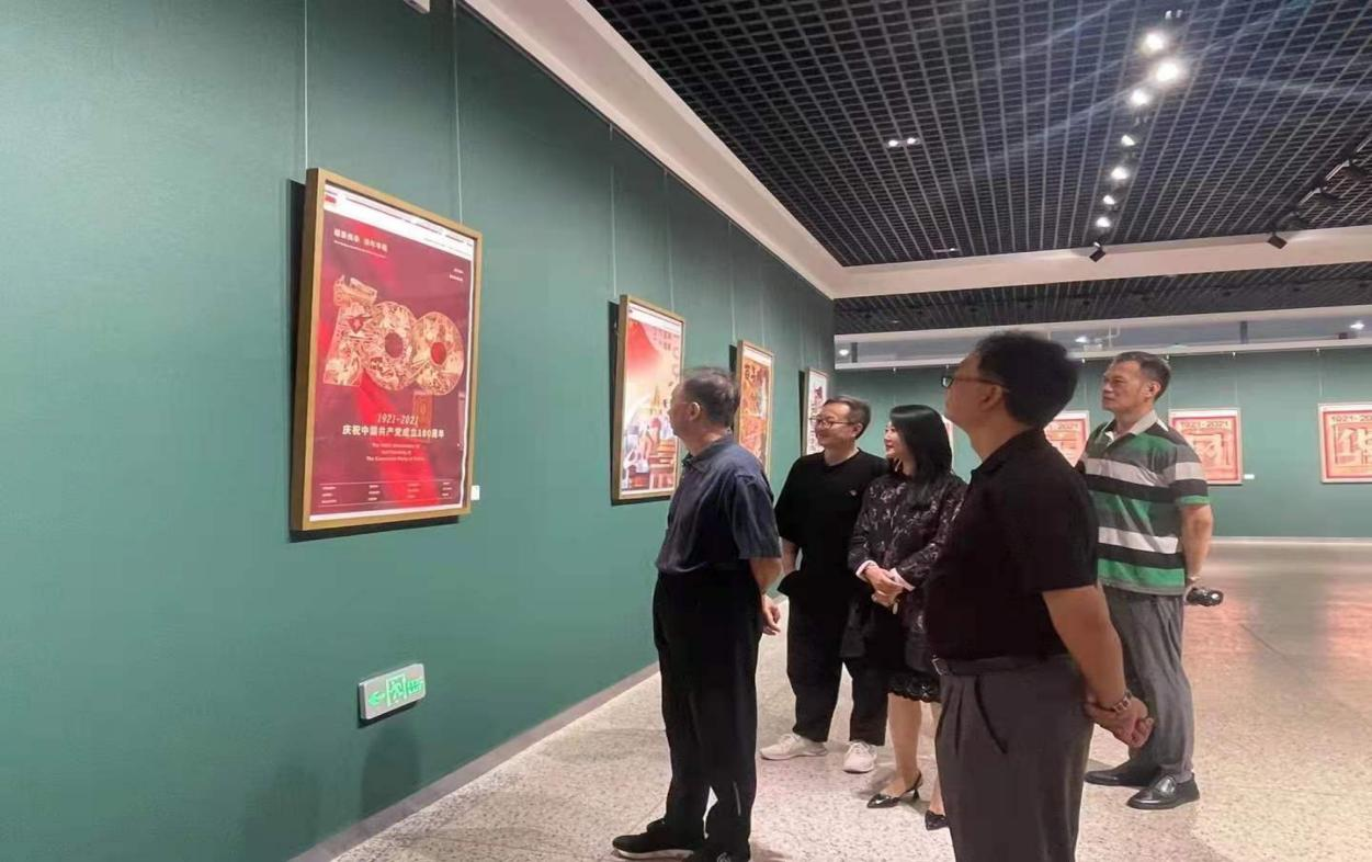 各界同仁观看美术馆一楼海报设计作品